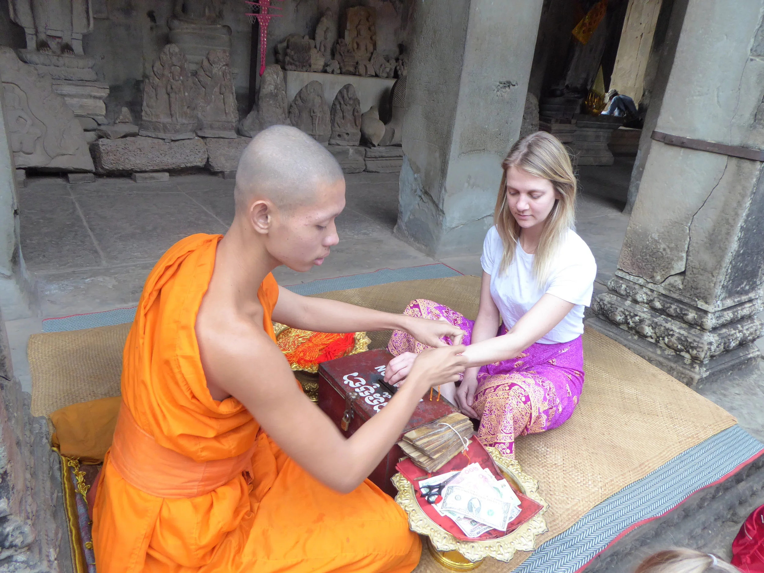 On day three, having arrived in Siem Reap the previous evening, we set off at the eye wateringly early time of 4:30am to catch sunrise at the incredible Angkor Wat, something which has been a lifelong bucket list goal for me. Sitting at the banks of the pond, you could just make out the silhouette of the magnificent temple, and as sunrise crept closer, each tiny detail became ever more clear. Countless pictures later, we toured the site with a guide and even climbed some precarious stairs to reach the top, taking in views of the other temples and surrounding jungle.